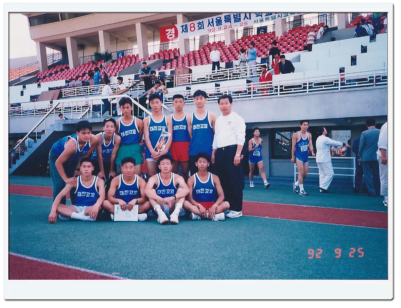 그 당시에는 1992년도에 동대문운동장에서 서울특별시교육감배 학교경기대회가 육상종목으로 매년 4~5월경에 열렸으나, 학생들이 호응도가 떨어져 있어 고생끝에 운동 좀 하는 학생들에게 관심을 갖고 감성적으로 접근하여 팀을 꾸려서 매년 빠짐없이 참가하다가 끝내는 입상을 하기 시작하였습니다.