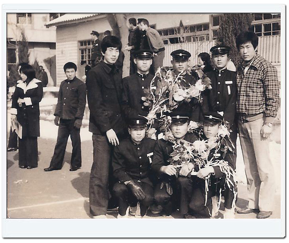 1974년 02월 삼일중학교 졸업식에 농구부 동창팀원들과 진병준 선배와 조원국 선배가 함께 해 주셨습니다.