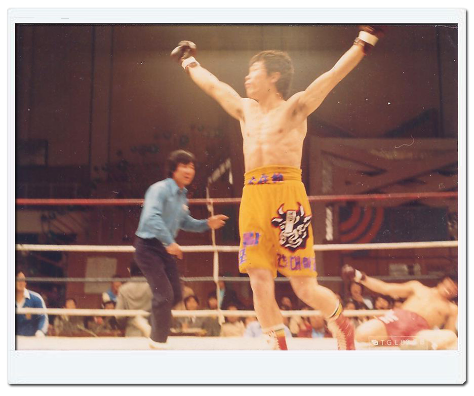 1981년 한국프로복싱 랭킹전에서 KO시키면서 직감으로 손맛을 보고 바로 돌아서서 좋아하는 모습니다. 상대 선수는 링바닥에 닿지도 않했는데 이미 저는 손맛으로 다운인지 알고 돌아서는 순간을 잘 찍은 신문사의 사진기자가 대단한 것 같습니다.